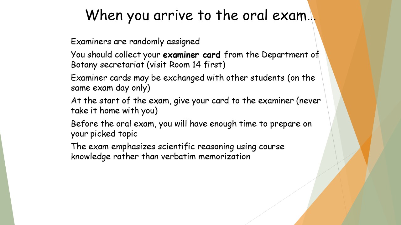 During the oral exam students take one topic from the A and one from the B list.