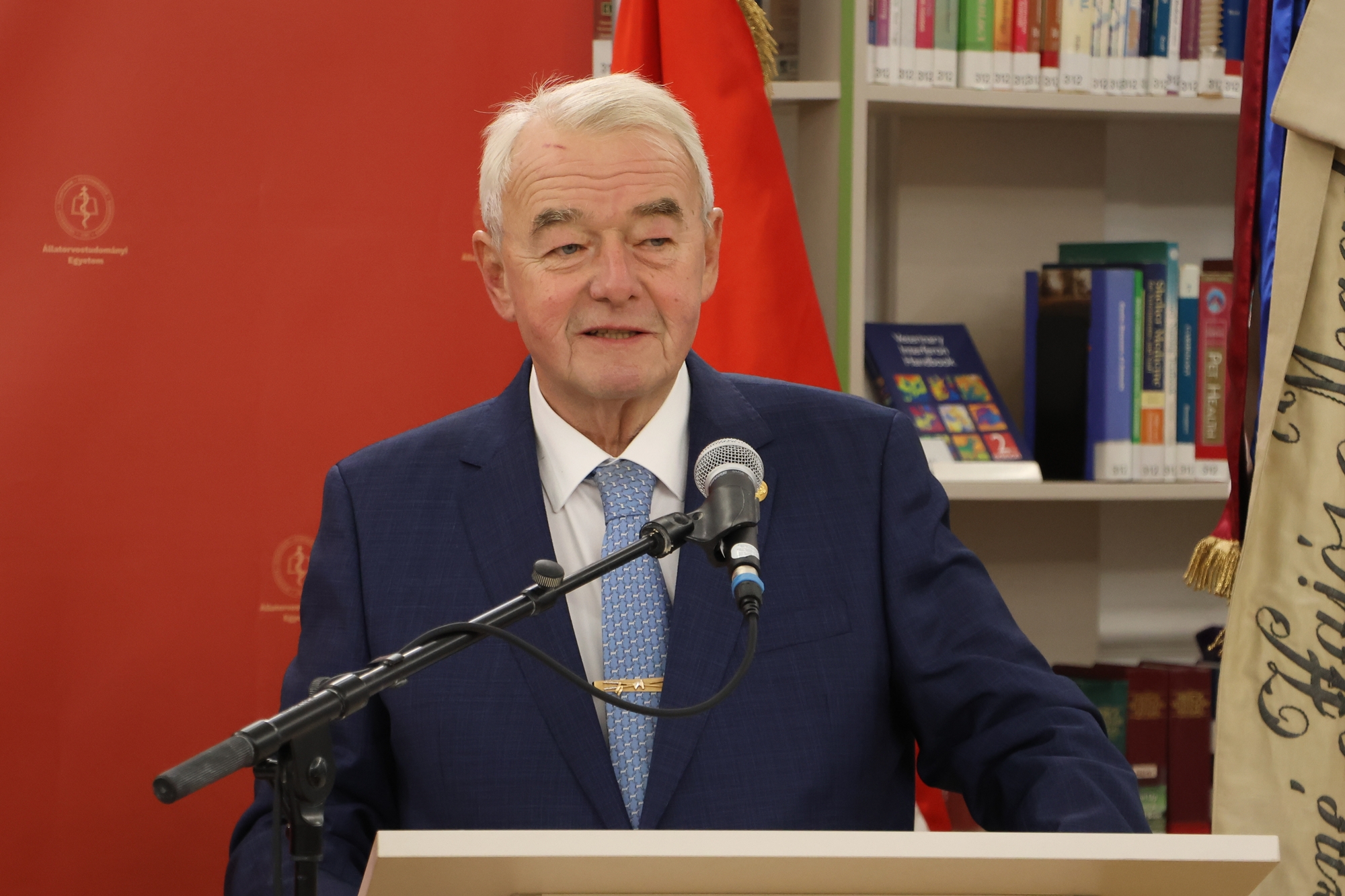 „Ma Magyarország az Európai Unióban azon kivételes országok közé tartozik, amely egyben őrzi a tradíciót, de nyitott az innovációra és versenyképes. Hazánkban ennek egyik kiemelkedő példája az Állatorvostudományi Egyetem. Őrzi tradícióit, hiszen a világon a harmadik legrégebbi állatorvosi képzéssel bíró egyetem 1787 óta. Ugyanakkor versenyképes és innovatív, hiszen, ha az egyik nagy nemzetközi rangsort tekintjük, akkor több mint 100 helyet előre lépve mondhatjuk azt, hogy a világ 59. helyén van az állatorvosképző egyetemek vonatkozásában, éppen egy kicsit előzi meg a gyógyszerésztudományi képzést, ami a 61. helyen áll. Jó az ilyen verseny, amikor két kiváló képzés, képzőhely verseng egymással azért, hogy a magyar fiatalok és a magyar nemzet számára megérdemelt jövőt és sikereket biztosítson.” – tette hozzá a miniszter.