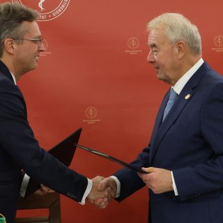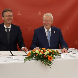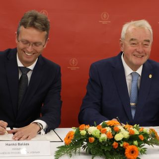 Az aláírást megelőzően Prof. Dr. Sótonyi Péter rektor és Dr. Hankó Balázs, kultúráért és innovációért felelős miniszter rövid beszédben foglalta össze az együttműködés jelentőségét.