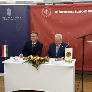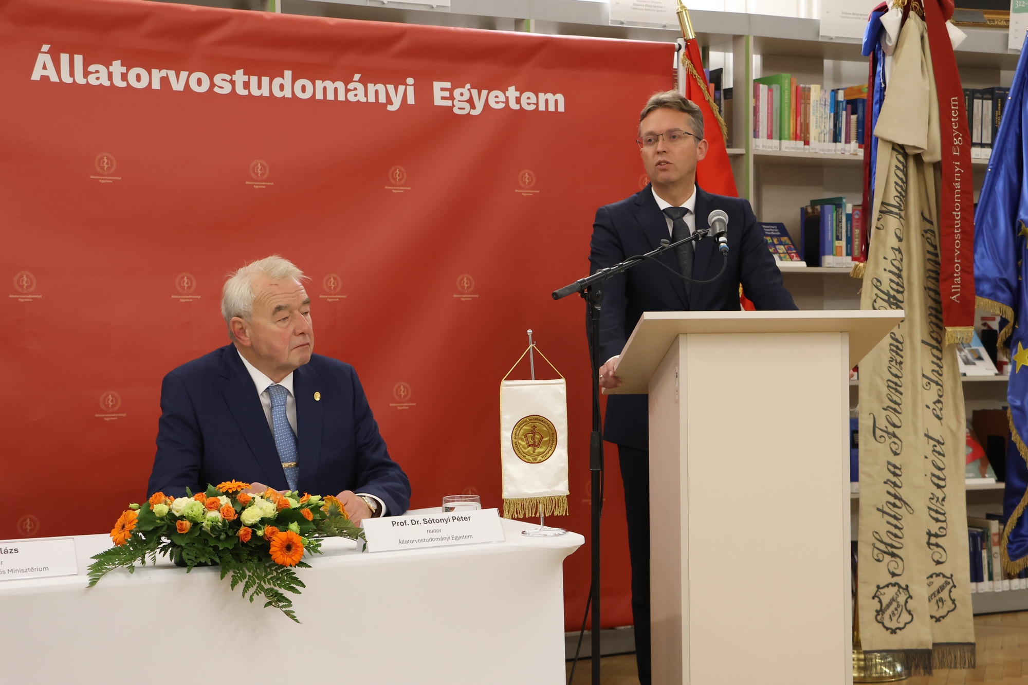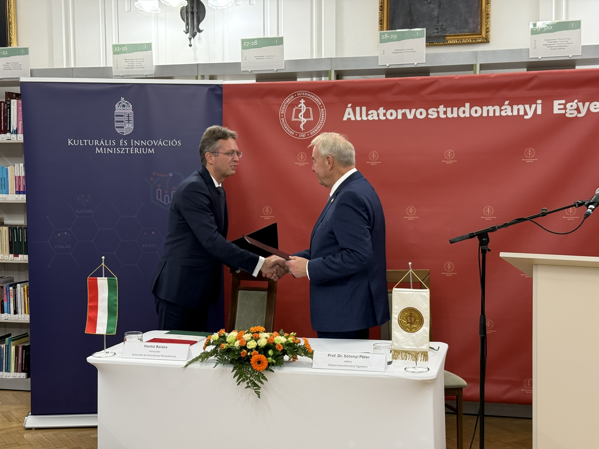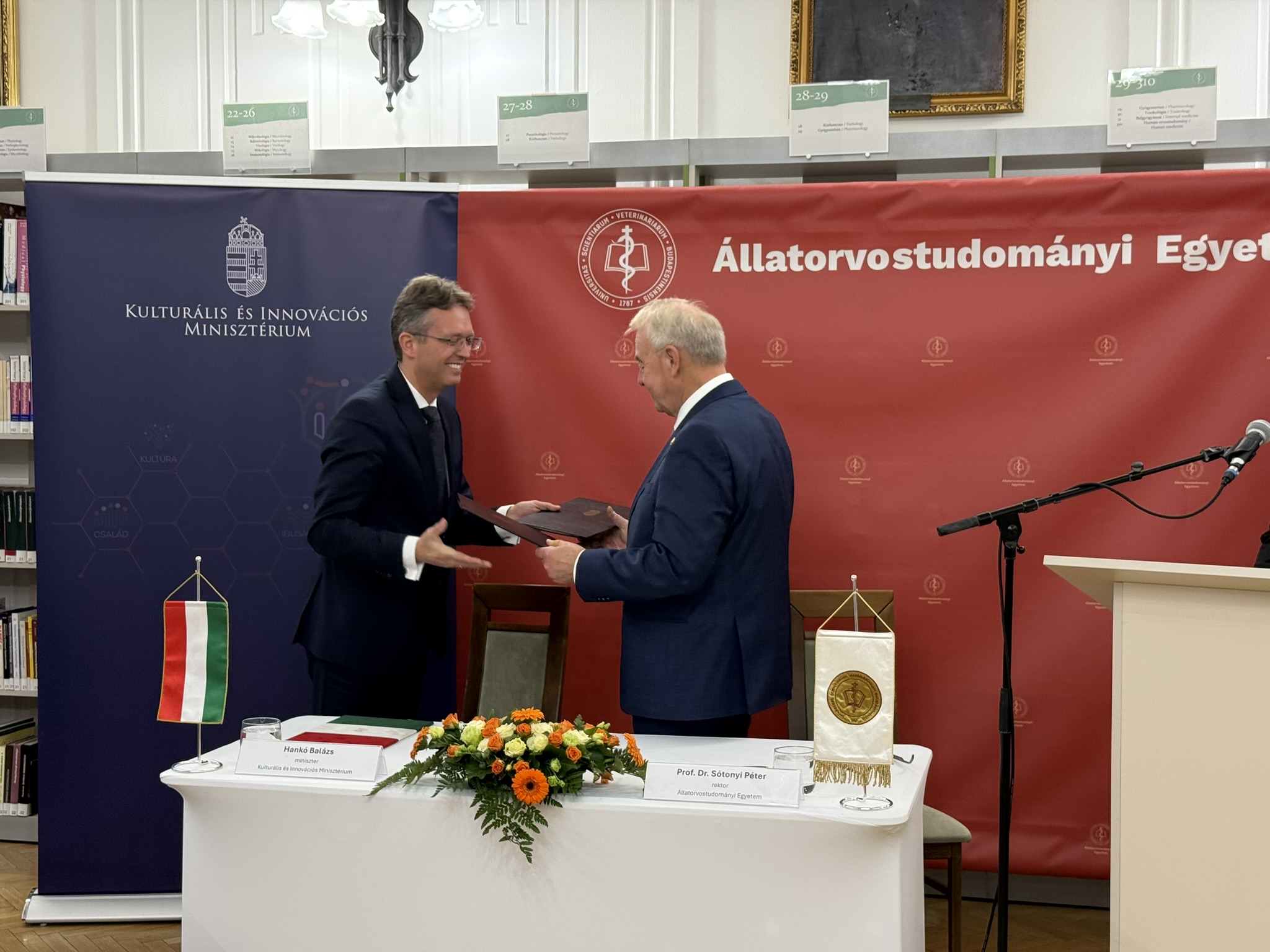 Prof. Dr. Sótonyi Péter rektor és Dr. Hankó Balázs kultúráért és innovációért felelős miniszter 2025. december 1-én ünnepélyes keretek között írta alá az Állatorvostudományi Egyetem és a Kulturális és Innovációs Minisztérium közt létrejött együttműködési megállapodást, amelynek keretében a kormányzat huszonnyolc milliárd forint támogatást biztosít a campus további fejlesztésére.