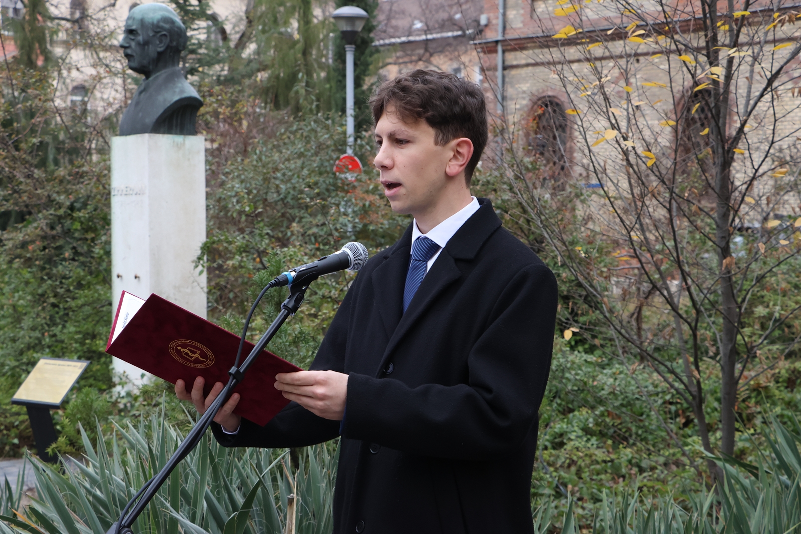 A 150 éve született Zimmermann Ágostonra emlékeztek december 3-án az egyetem parkjában felállított szobránál. Elsőként Feczkó Csongor szavalta el Endrődi Sándor A tudós című versét, majd Prof. Dr. Sótonyi Péter a következő beszédben idézte fel a professzor alakját és életútját.