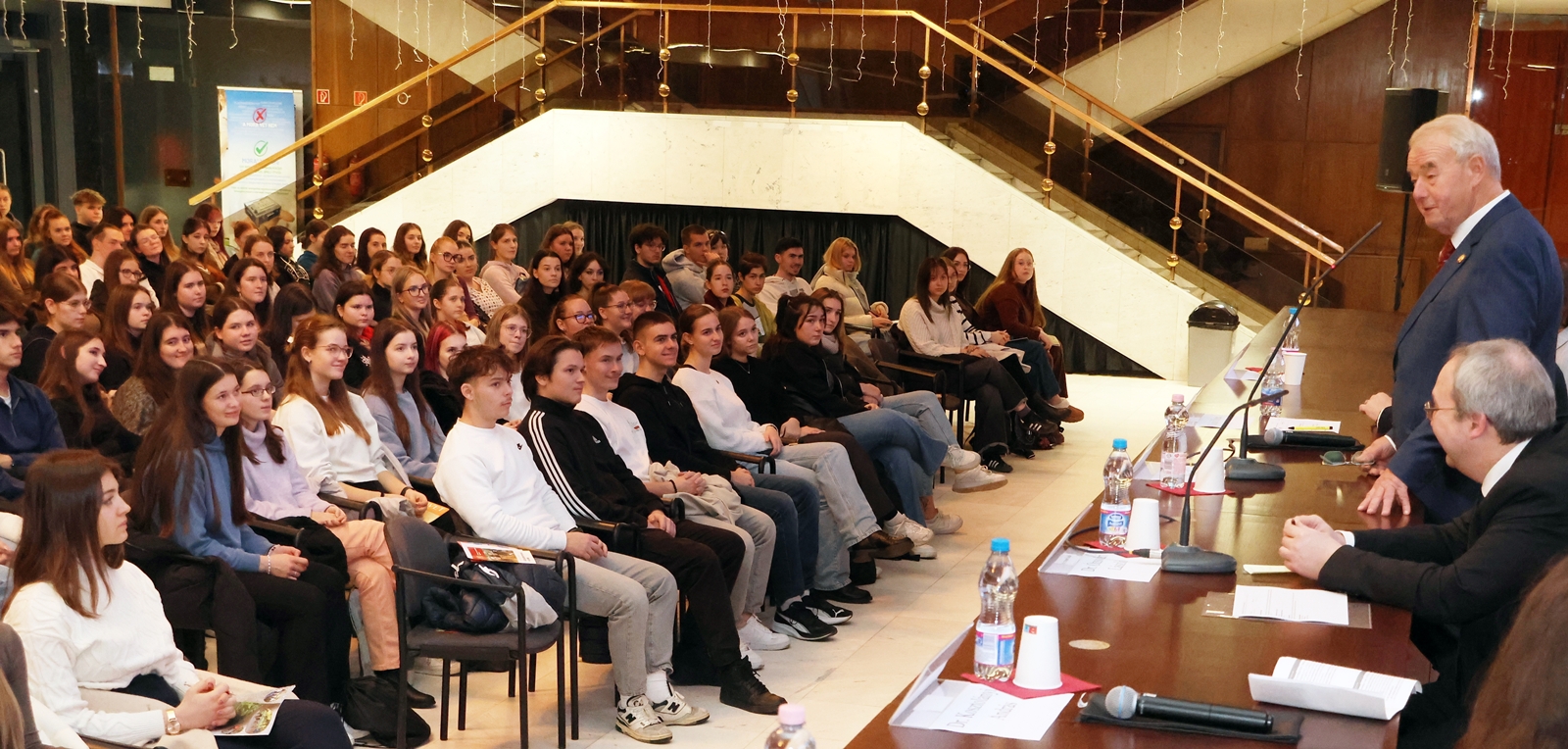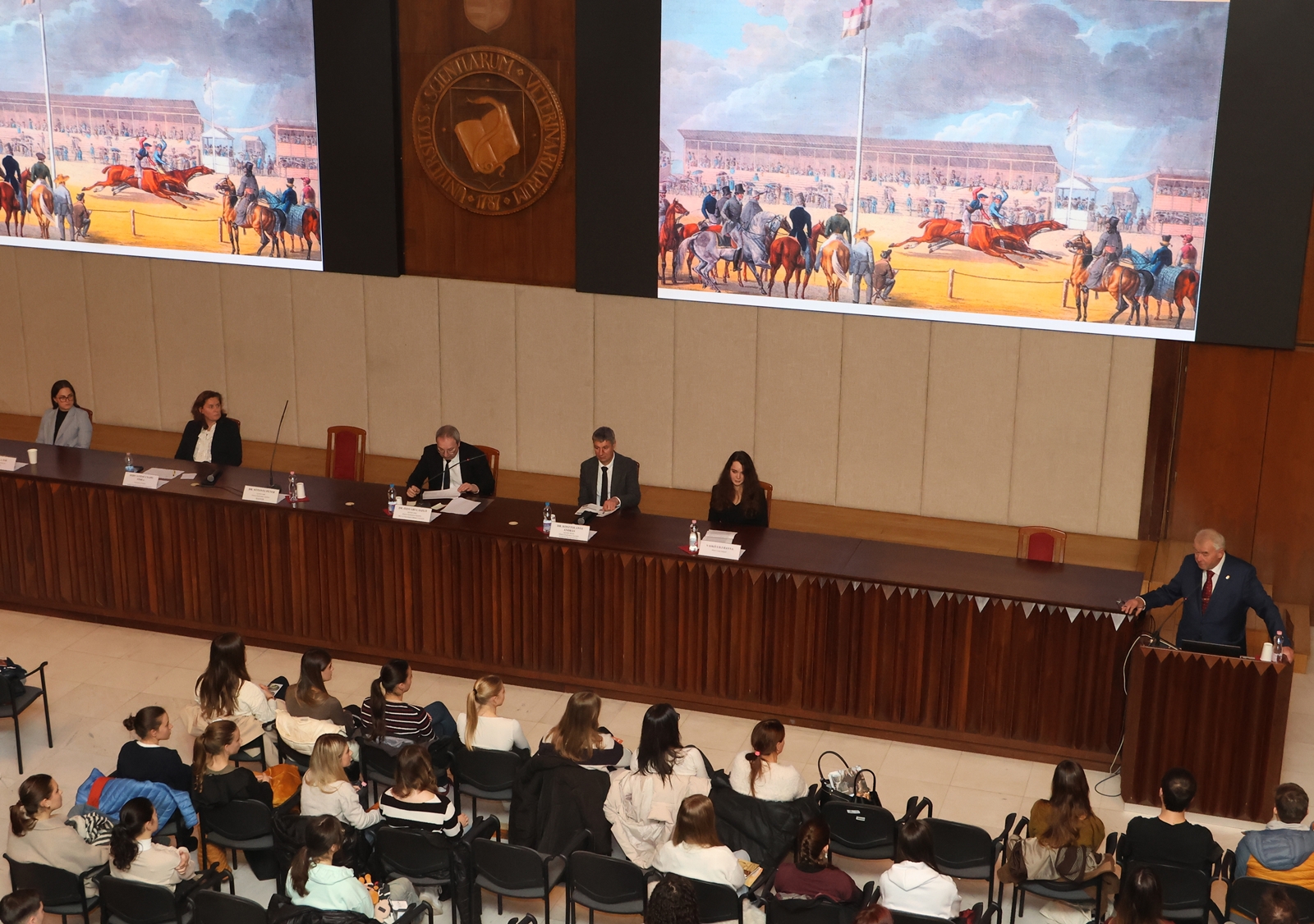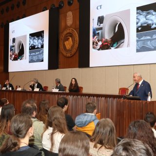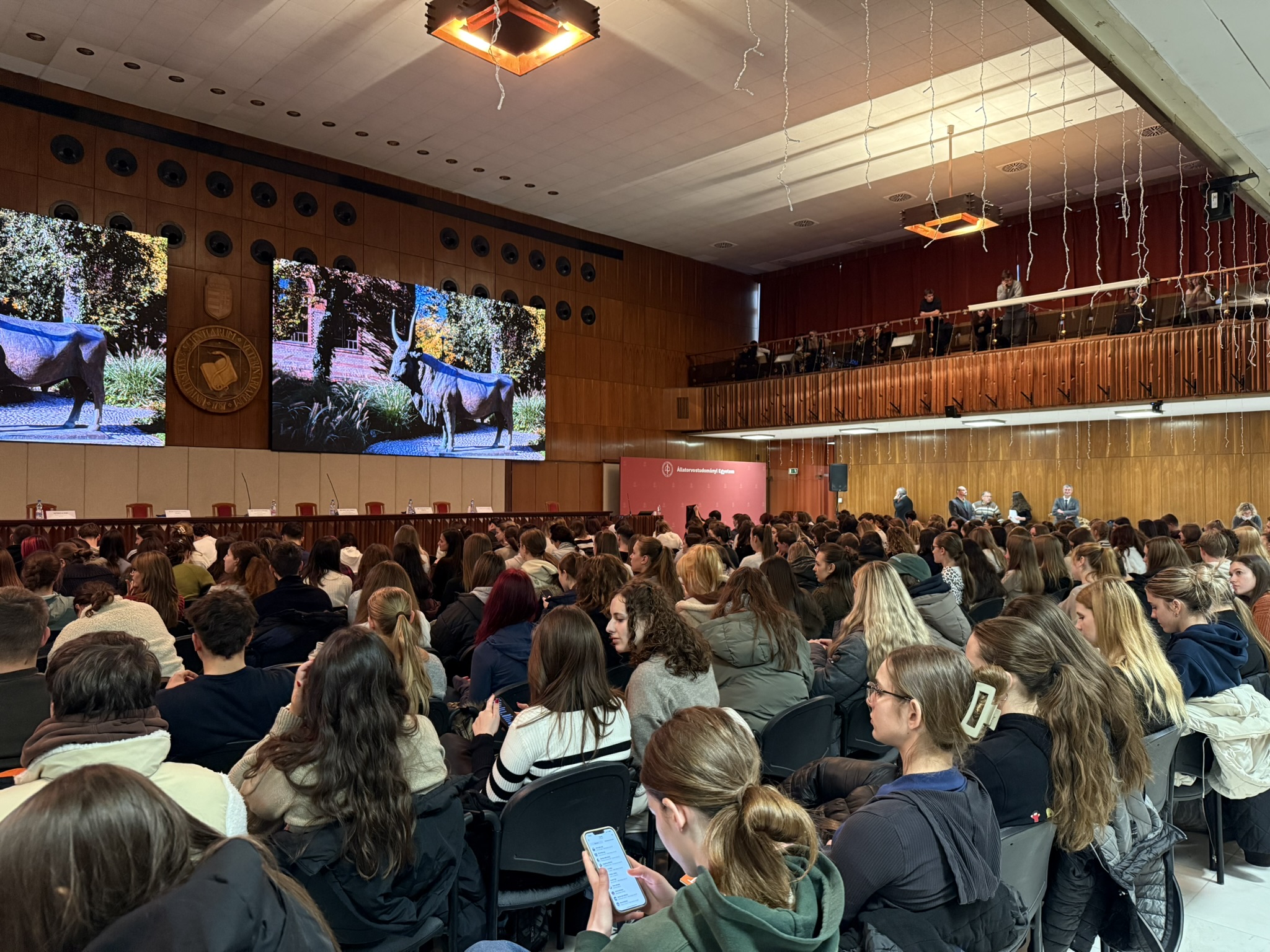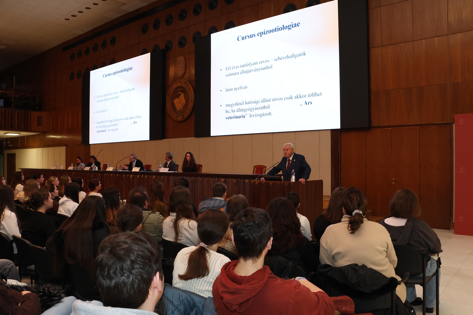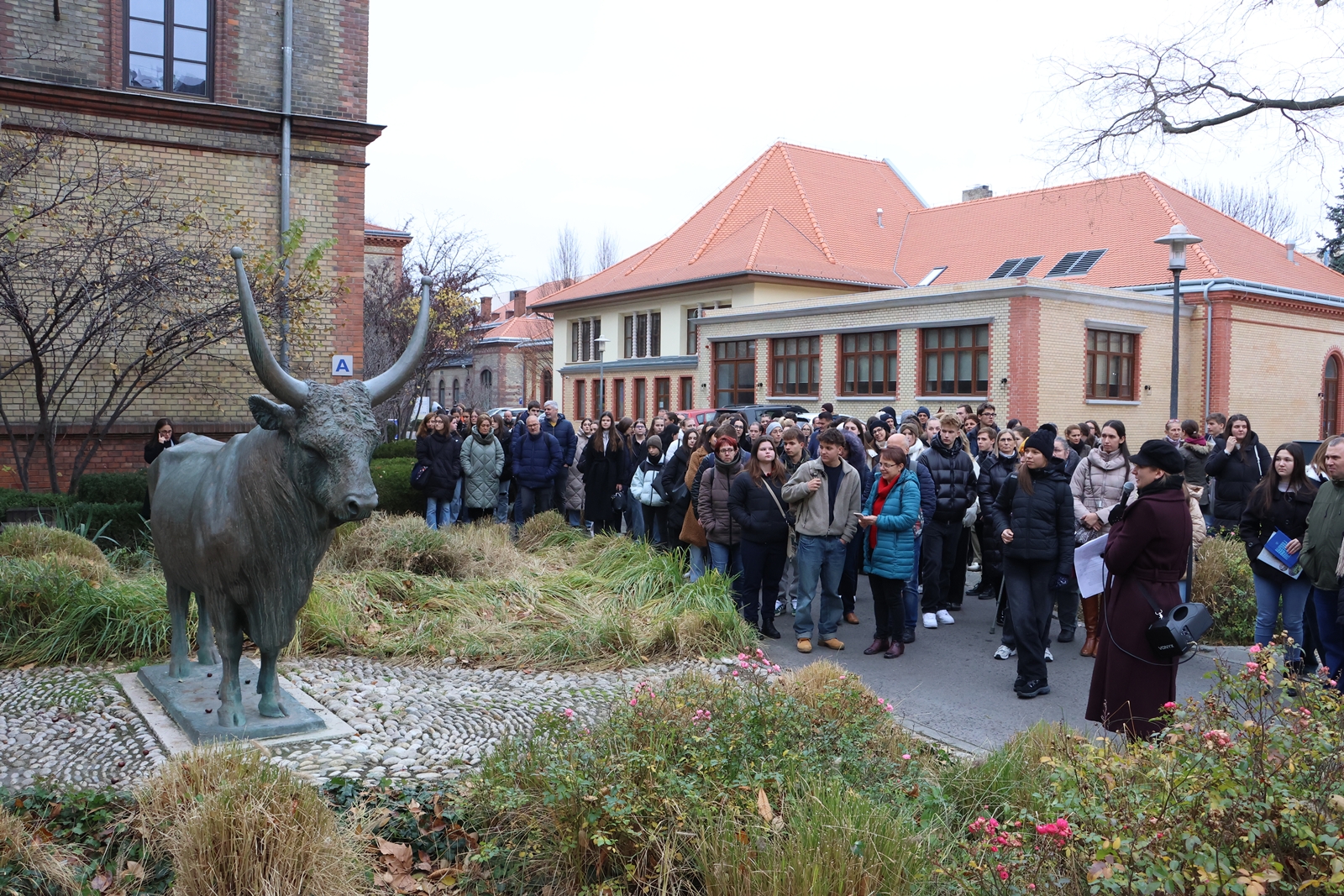 Több százan nyertek betekintést az Állatorvostudományi Egyetem évszázados történelmébe és mai működésébe a december 3-i nyílt napon. A pályaválasztók az Aulában személyesen, szüleik és hozzátartozóik a Hetzel Henrik előadóban, kivetítőn hallhatták Prof. Dr. Sótonyi Péter rektortól az egyetem szellemiségéről szóló köszöntőjét, és a Marek József Ösztöndíjprogram ismertetését.