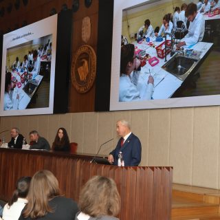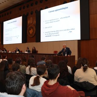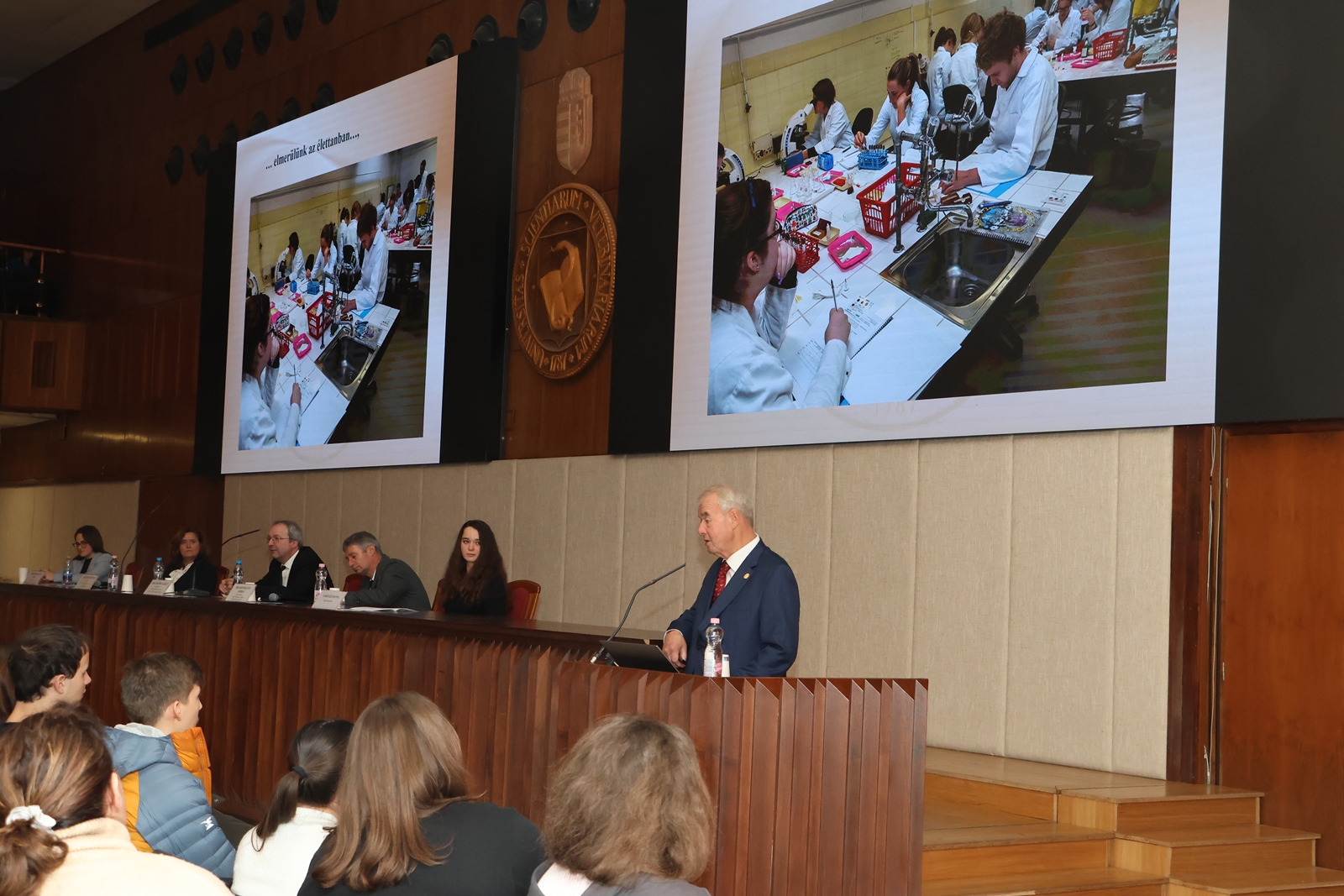 Prof. Dr. Ózsvári László oktatási rektorhelyettestől a felvételi eljárás folyamatáról, az állatorvos képzés szerkezetéről és a gyakorlati képzésről, Dr. Kosztolányi Andrástól, a Biológiai Intézet igazgatójától pedig a kutató zoológia képzés iránt érdeklődők kaphattak bővebb tájékoztatást. Vaskó Lili, ötödéves állatorvostan hallgató az egyetem pezsgő diákéletéről, a fiatalokat érintő közösségi tudnivalókról mesélt a nyílt napra ellátogató diákoknak.