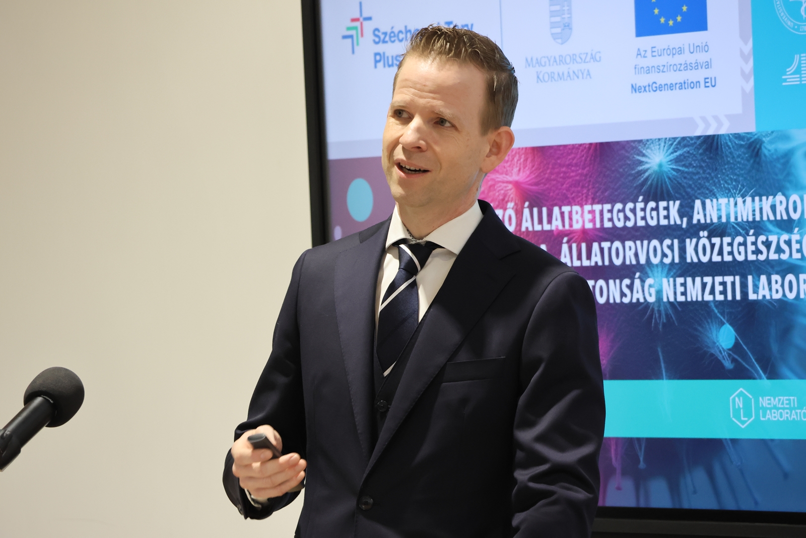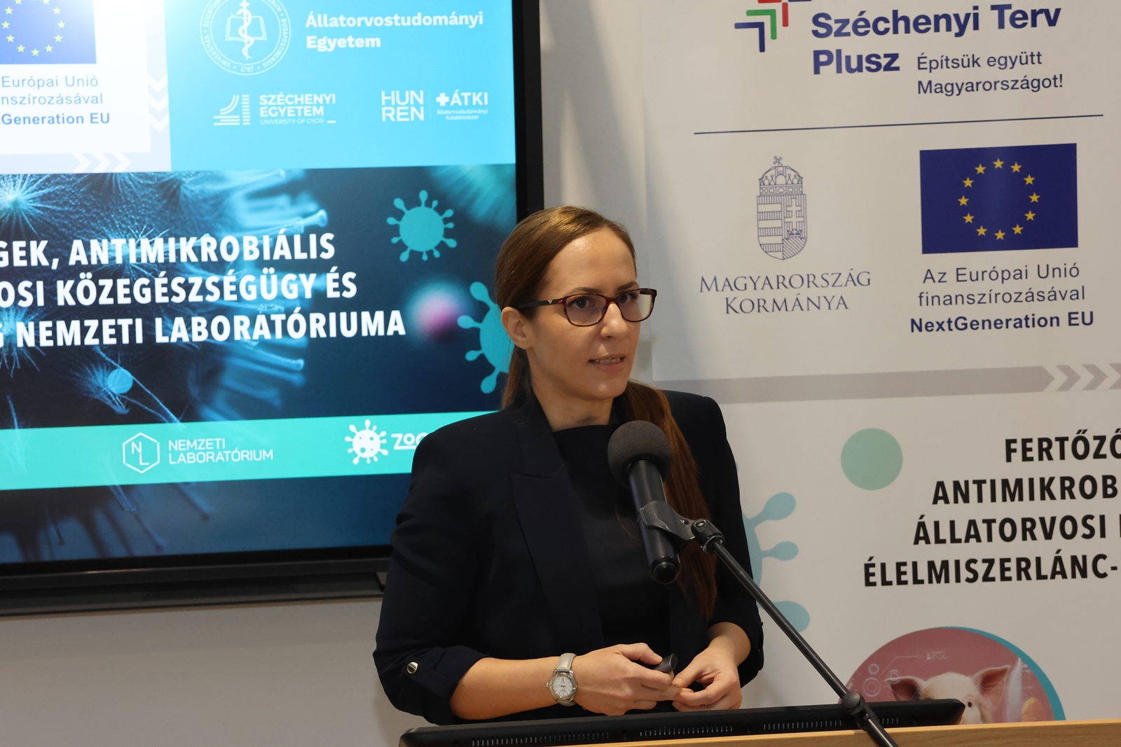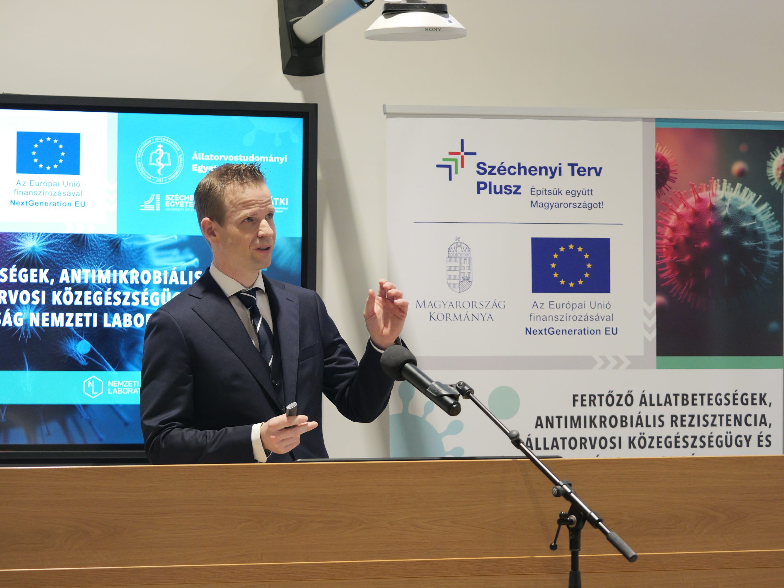 Az Állatorvostudományi Egyetem konzorciumvezetésével, a HUN-REN Állatorvostudományi Kutatóintézettel és a Széchenyi István Egyetemmel közös munkában megvalósuló „Fertőző állatbetegségek, antimikrobiális rezisztencia, állatorvosi közegészségügy és élelmiszerlánc-biztonság Nemzeti Laboratóriuma” című, RRF-2.3.1-21-2022-00001 azonosítójú projekt zárórendezvényét 2026. február 19-én, 10:00 órától tartották Budapesten, az Egyetem István utcai campusán. A projekt 3,3 milliárd forint támogatásból valósult meg, és olyan kutatás-fejlesztésekre épült, amelyek a fertőző betegségek megelőzését, az antimikrobiális rezisztencia (AMR) kockázatainak csökkentését, valamint diagnosztikumok, vakcinák és gyógyszerjelöltek fejlesztését szolgálják.