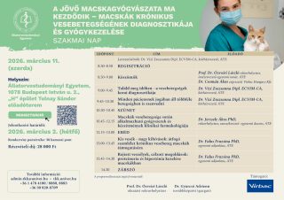 Macskagyógyász Szakmai Nap – A macskák kórnikus vesebetegségének diagnosztikája és gyógykezelése Kezdés: 2026-03-11 08:30Vége: 2026-03-11 14:30 Regisztráció itt.