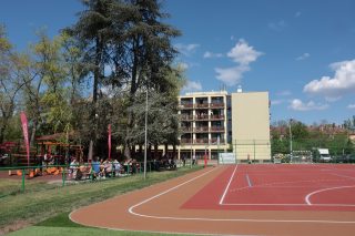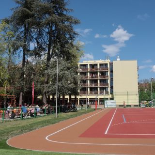 A beruházás részeként megújult a kollégiumot, a sportpályát és a faházat összekötő terület burkolata is.