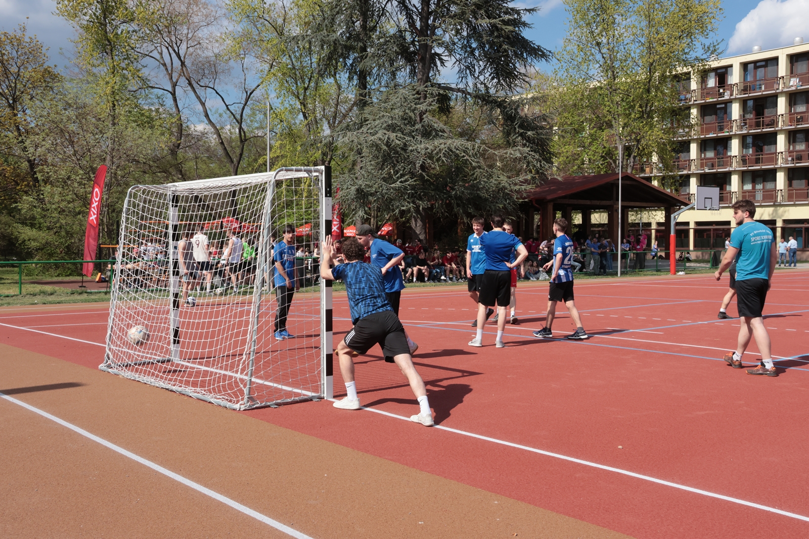 A 27×55 méteres sportpálya a kollégium egyik fontos helyszíne, az elmúlt években azonban szinte használhatatlanná vált. A helyreállítás során kijavították az aljzathibákat, a pálya új gumiburkolatot és több sportág gyakorlására alkalmas felfestést kapott. Az újjáépült terület így már futásra, röplabdára, kézilabdára, futballra, sőt lábtengózásra is lehetőséget biztosít. A korlátok és a hálók cseréje mellett korszerűsítették a világítást, valamint a sportpálya közelében egy új, rekortán borítású kondipályát alakítottak ki, ahol egy többfunkciós edzőberendezés várja a hallgatókat.