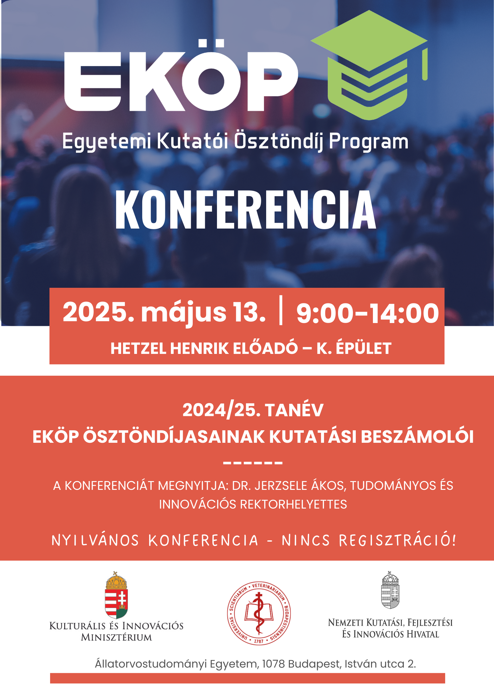 Szeretettel várunk minden érdeklődőt a 2025. évi EKÖP KONFERENCIÁN. Regisztráció nem szükséges! Bemutatkoznak a 2024-25-ös tanévre kutatási ösztöndíjat elnyert graduális és doktori hallgatóink, valamint fiatal oktatók-kutatóink.