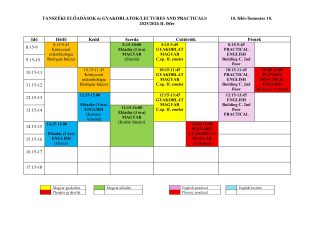 Szerda 8.15-10:00, Zlamál előadó; Szerda 13.15-16:00, Kotlán Sándor előadó